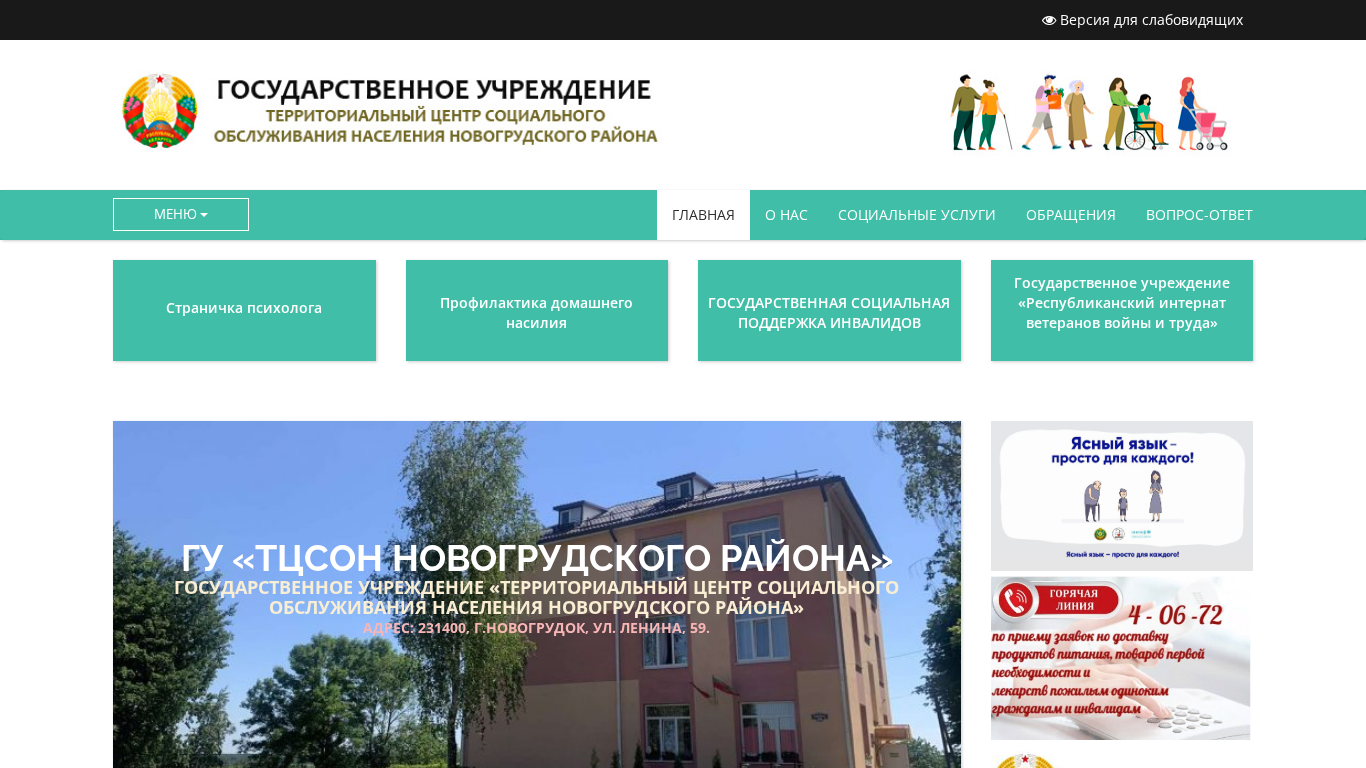 | Название / Заголовок | ТЦСОН Новогрудского района | ГУ «ТЦСОН Новогрудского района» | Управление по труду, занятости и социальной защите Новогрудского райисполкома |