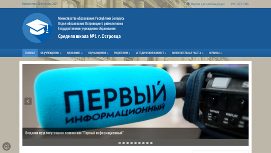 | AI-анализ | The website is for the Middle School Number 1 in Ostrovets, Belarus. It was updated on September 28, 2025 and is managed by the Ministry of Education of the Republic of Belarus, Ostrovets District Executive Committee, and the State Educational Institution Middle School Number 1 in Ostrovets. The website provides information about the school, its history, leadership, academic programs, social services, and extracurricular activities. It also includes sections on school policies, rules, and schedules, as well as resources for parents and students. The website is accessible in Russian, Belarusian, and English languages. The school offers various paid services, such as a library and media center, and provides information on school events, achievements, and innovations. Additionally, the website includes information on the school's health and safety measures, as well as resources for students' academic |