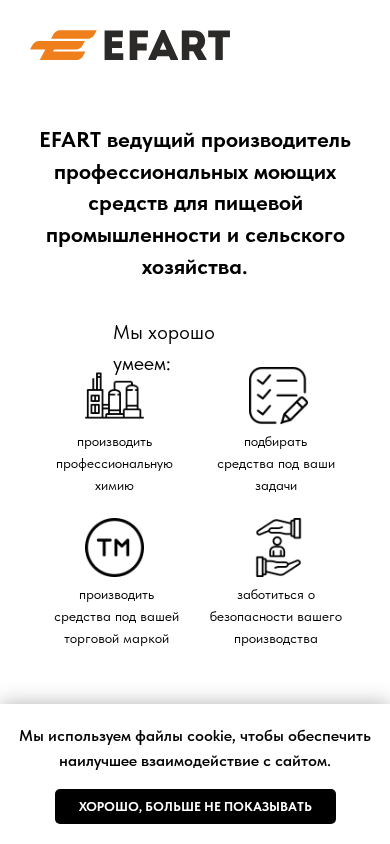 | SEO-описание | EFART ведущий белорусский производитель профессиональных моющих средств и промышленной химии |