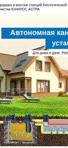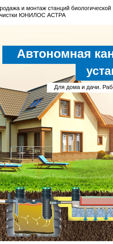 | Название / Заголовок | Системы автономной канализации. Купить септик Юнилос Астра для частного дома и дачи. Монтаж |