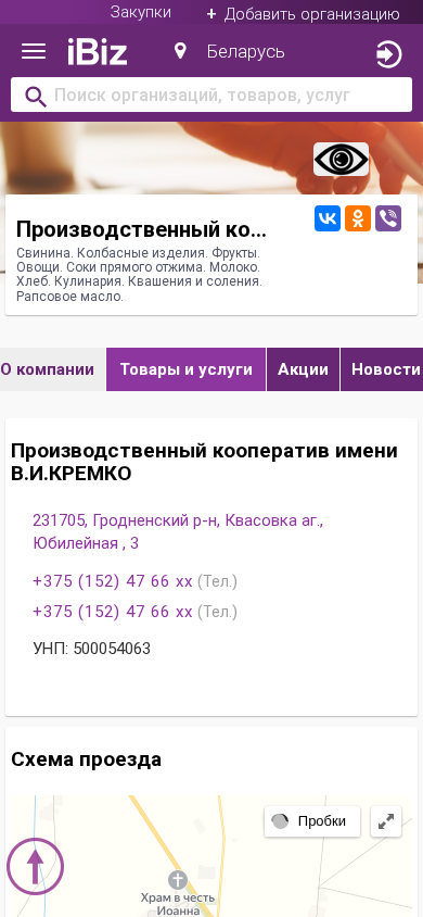 | Название / Заголовок | Производственный кооператив имени В.И.КРЕМКО - Свинина. Колбасные изделия. Фрукты. Овощи. Соки прямого отжима. Молоко. Хлеб. Кулинария. Квашения и соления. Рапсовое масло.. 231705, , Квасовка аг., Юбилейная , 3 |