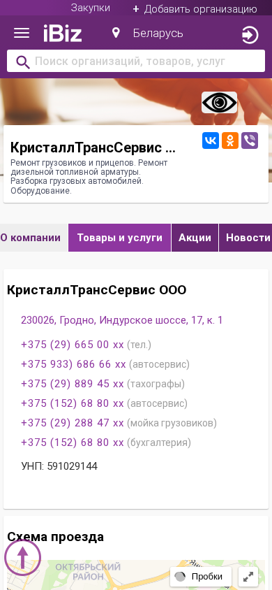 | AI-анализ | This website belongs to CrystalTransService LLC, located at Indurskoe Shosse 17, k. 1 in Grodno, Belarus. The company specializes in the repair of trucks and trailers, as well as the repair of diesel fuel tanks and the disassembly of heavy vehicles. Equipment is also offered. The website provides contact information, including phone numbers for the company's auto service, taxographers, and autowash, as well as a phone number for the accounting department. Business hours are listed as Monday through Friday from 8:30 AM to 5:00 PM, with no lunch break. The company can be found in the categories of heavy vehicle repair and auto services in Grodno. |