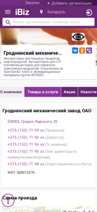 | AI-анализ | The portal is a manufacturing company, Grodensky Mechanical Plant OAO, located in Grodno, Belarus, at Karского 20. The company specializes in producing and selling tank trailers for food products and oil, trailers for solid and gaseous substances, container-tankers for transporting aggressive liquids, and special equipment based on BelAZ trucks. The company also offers anti-freezing materials from the Fluvis group. Contact information, including phone numbers and the address, is provided on the website. The company's UNP number is 500013376. |