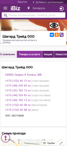 | AI-анализ | The portal shigerd-treyd.ibiz.by is a company based in Grodno, Belarus, specializing in the sale of automotive parts both wholesale and retail. The business is located at Я. Коласа, 38A, and can be reached through several phone numbers: +375 (152) 60 13 xx, +375 (44) 539 90 xx, +375 (29) 783 15 xx, +375 (44) 539 90 xx, and +375 (152) 60 58 xx. The company's Unified State Register number is 590718849. The portal also provides information on how to reach the location and its |