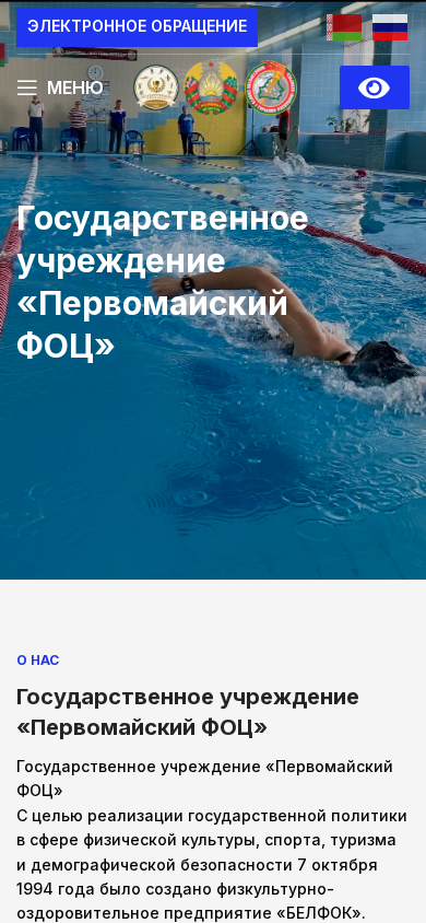 | SEO-описание | «Первомайский ФОЦ» государственное учреждение города Минска. В спортивном комплексе открыты секции для всех категорий граждан от детей до старшего поколения. |