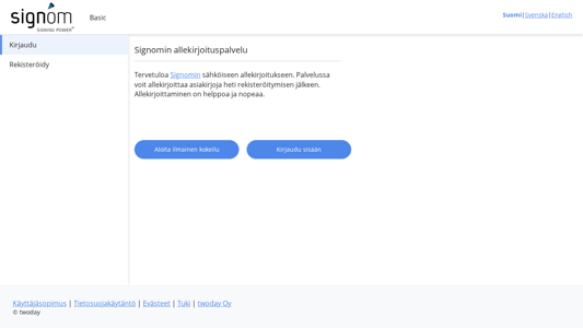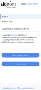 | AI-анализ | This website is titled "Signom" and provides a registration and e-signing service for users to sign and manage documents electronically. The description includes keywords such as "kirjaudu" (register), "siirry" (go), "sis" (inside), "rekister" (register), "signomin" (Signom), "lkeen" (to), "asiakirja" (document), "twoday" (company name), and "allekirjoituspalvelu" (e-signing service). The top words indicate that users can register, sign up for the service, and sign documents immediately after registration. The process involves going to a provided link, registering, and signing the document. Saved documents can be downloaded and kept for personal use. Documents are automatically removed from the service after signing but their origin can be verified through the service later. The website |