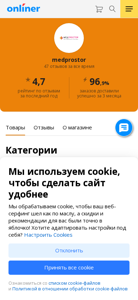 | AI-анализ | This online resource, titled "Купить товары в магазине medprostor" (Buy goods in the medprostor store), is a catalog for purchasing items from medprostor. The site features product characteristics, photos, customer reviews, and price comparisons. The most frequently searched terms on the site include "доставка" (delivery), "купить" (buy), "бонусного рубля" (bonus rubles), "рубля" (rubles), and "каталоге" (catalog). The site has a 4.7-star rating based on 47 reviews, with 96.9% of orders successfully delivered in the last three months. The store sells electronics, household appliances, beauty and sports products, and items for children and mothers. The catalog currently lists 68 items for purchase, |