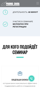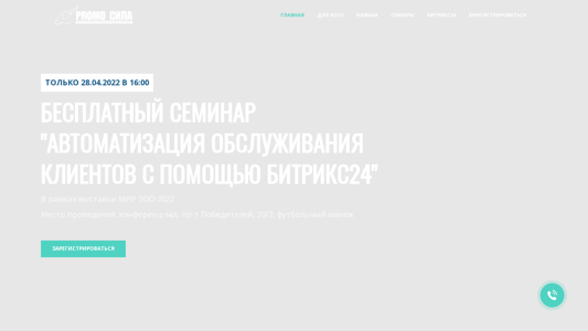 | AI-анализ | --- This website is for a seminar named "Bitrix24 Seminar at the Stone Processing 2022 Exhibition" hosted by OOO PromoSila. The seminar offers attendees to learn "How to Build a Sales System and Reach a New Level Using a CRM System." The registration for this free seminar is open, taking place on April 28, 2022, at 4:00 PM, in the conference hall at pr-t Poбедителей, 20/2, football manege. It is intended for business owners who want to effectively manage their employees during remote work and top managers who need to learn managing processes in remote conditions, as well as HR directors who should understand the role of HR management in the new conditions. The seminar will last for one hour and covers topics such as setting up a seamless work and communication |