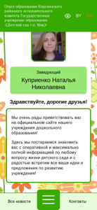 | AI-анализ | The web project "Государственное уchrezhdenie obrazovaniia 'Детский сад г.п. Мир' (Mir State Educational Institution 'Children's Garden')" is a website dedicated to a state educational institution for preschool children in Belarus. The homepage provides information about the institution, including news and contacts for the educational department of the local executive committee. The title and description keywords indicate that the website is about a children's garden or kindergarten in the town of Mir. The content includes news about recent activities, such as preparing gifts for Mother's Day and the Republic of Belarus' safety campaign. The author of the content is Natallia Kupriienko. The domain name is mirsad.edu-korelichi.by. |