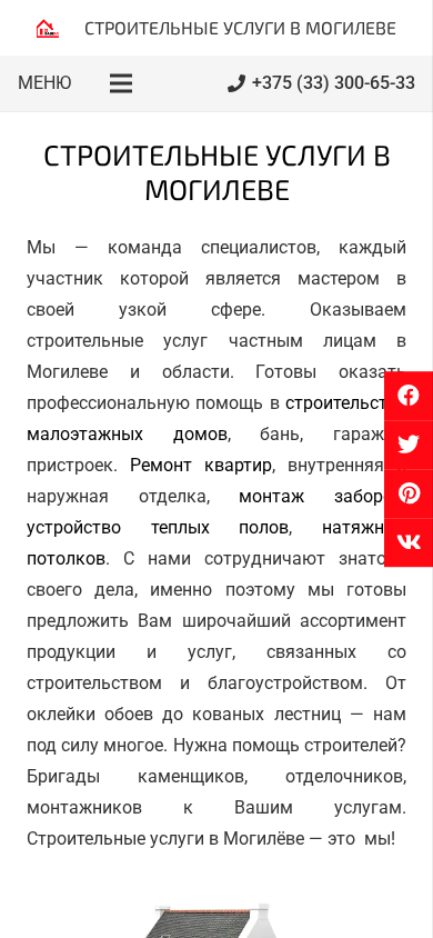 | SEO-описание | Строительные услуги в г.Могилеве по доступным ценам 2019-2020 года. Бригада строителей с опытом работы от 10 лет. Отделка, кладка, заборы, полы, фасады и др |