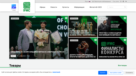 | AI-анализ | This online resource is called IFMC and is available in Russian, Belarusian, English, and Chinese languages. It contains sections for News, Artists, Information, and a Shop offering various items such as football shirts, shopping bags, magnets, and wooden and acrylic magnets. The Festivals section includes details about the IFMC festival, its winner Valentin Isakov, and a glimpse into the festival's journey with Alexander Mogilevym. The site also features Partners, which include major corporations like Beltelekom, Belvesp, Belarusian State Youth Theater, and Rubikon, among others. The site uses cookies for functionality and analytics. |