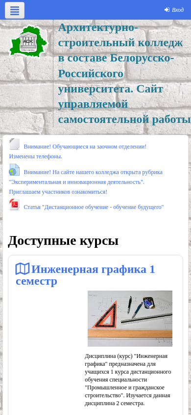 | Ключевые слова | moodle Архитектурно-строительный колледж в составе Белорусско-Российского университета. Сайт управляемой самостоятельной работы |