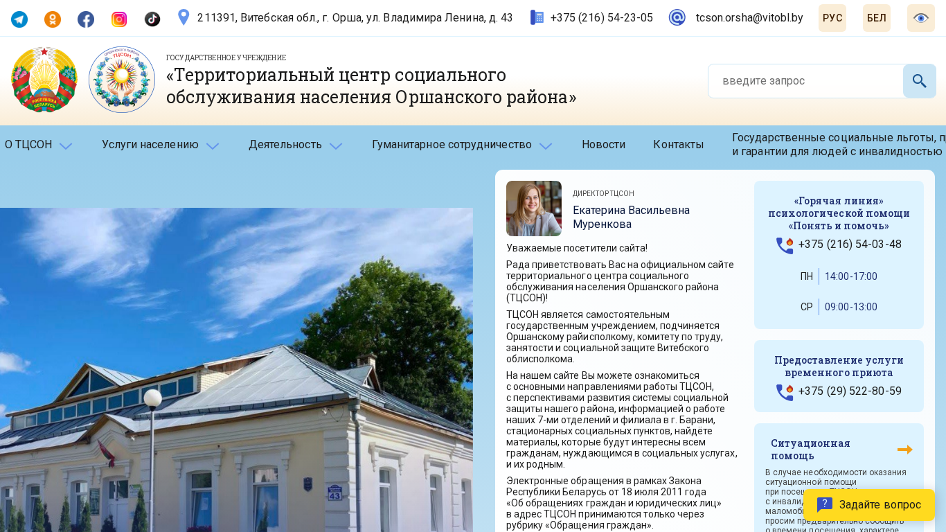 | SEO-описание | Официальный сайт государственного учреждения «Территориальный центр социального обслуживания населения Оршанского района» |