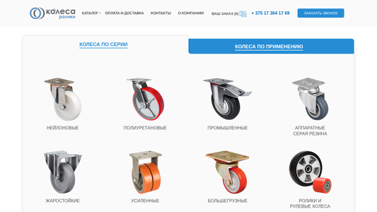 | AI-анализ | --- This website is an e-commerce platform selling wheels and wheel supports for carts in Minsk, Belarus. The offer includes both swiveling and non-swiveling wheels, as well as various wheel supports with a brake and a ball bearing. The catalog includes a wide range of wheels for industrial, equipment, medical, and other applications, with various materials such as neoprene, polyurethane, steel, and pneumatic. The website also offers payment and delivery options, and contact information is provided. |