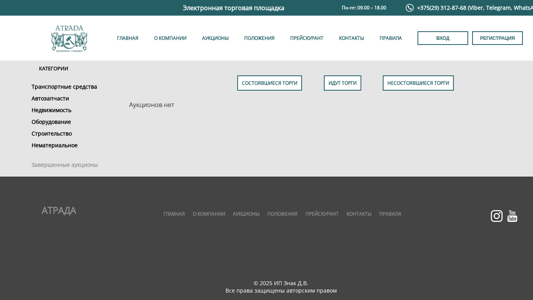 | AI-анализ | The website <www.atrada.by> is an electronic trading platform for various goods and services, including transport vehicles, automotive parts, real estate, equipment, construction materials, and intangible assets. Users can access the platform by logging in with their credentials or registering for a new account. The website operates from Monday to Friday between 09:00 and 18:00. Contact information, including a phone number (Viber, Telegram, WhatsApp: +375(29) 312-87-68) and email, is provided for inquiries or support. The website includes sections for company information, ongoing and completed auctions, rules, and categories for specific items. The design is simple with a focus on functionality, making it easy for users to navigate and find what they need. |