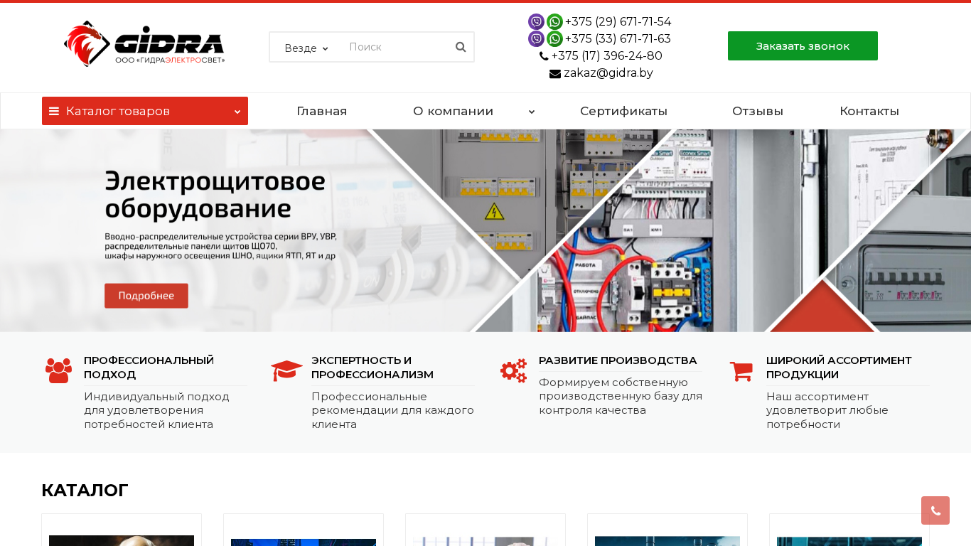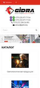| AI-анализ | --- The web project "ГидраЭлектроСвет" (GidraElectrosvet) is a Belarusian e-commerce website specializing in various types of lighting and electrical equipment. The title of the site is "ООО «ГидраЭлектроСвет»" and it offers a wide range of products including industrial, architectural, and decorative lighting, as well as electrical components such as switches, transformers, and cables. The description mentions "светодиодные светильники" (LED lights) frequently, suggesting that they are a significant part of the inventory. Other product categories include "компрессоры" (compressors), "редукторы" (reducers), and "электротехническая продукция" (electrotechnical products). The website also offers "импорто |