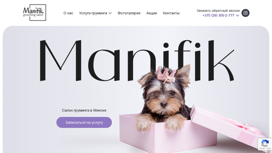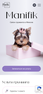 | AI-анализ | --- The web project "Salon Manifik" is a grooming salon for pets in Minsk, Belarus. The salon offers professional services for dogs and cats, including grooming, bathing, ear cleaning, tooth cleaning, and additional services. The website provides information on their services, such as pet grooming for cats and dog trimming, as well as details on hygienic care and express lining. Ultrasonic tooth cleaning and various additional services are also available. The salon takes care of the health and beauty of pets, with a focus on providing a positive experience for the animals. The site includes a photo gallery, contacts, and options to book services or request a callback. The salon boasts a dedicated team of professionals who cater to the unique needs of each pet, considering their breed, type of fur, skin condition, and overall health. Services are provided by experienced specialists, who |