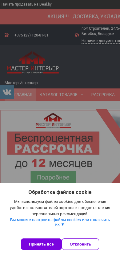 | AI-анализ | --- The website is a Belarusian e-commerce platform specializing in the sale and installation of laminate, doors, ceilings, and windows. The company, Master Interier from Vitebsk, offers low prices and free installation and delivery. The site features high-class specialists to help with product selection and boasts over 18 customer reviews. The catalog includes a wide range of products such as Staller, Ecoshpon, Profildoors, wooden doors, fittings, windows, and various types of flooring, including Tarkett and Mastino brands. The site also offers decorative stone and mineral-vinyl flooring, as well as various door and window frames. The company provides delivery and payment options, and contact information is available on the site. |