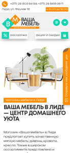 | AI-анализ | The portal Mebel-Lida.by is a Belarusian e-commerce website specializing in the sale of furniture, both rigid and soft. The website, operated by the business 'Vasha Mebel,' offers a wide range of products including sofas and corner sofas, beds, chairs, tables, and office furniture, as well as custom-made kitchens. The store is located in Lida, Belarus, on Fruznе Street 18, and is open daily from 10:00 to 19:00. Customers can contact the store at +375 29 803-94-99 or +375 29 868-06-11 for inquiries or to place orders. The website features a variety of promotional offers, including discounts and financing options, which can be |