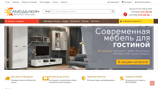 | SEO-описание | Купить готовую мягкую мебель в Минске с доставкой по всей Беларуси в интернет-магазине Samodelkin.by. Магазин предлагает большой выбор шкафов-купе, комодов, а также кухонной мебели и для ванных комнат. Предоставляем рассрочку до одного года. |