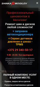 | AI-анализ | This online resource offers a full range of tire and wheel services in Mogilev, Belarus. The website highlights various tire repair and wheel services such as disk repair and flattening, rim straightening, argon welding, tire conditioner refilling, and winter tire installation. The site also mentions the availability of tire storage and TPMS (Tire Pressure Monitoring System) services. The content is written in Belarusian, with some keywords and top words in English for search engine optimization. The services are priced affordably, with prices starting from 15 rubles for rim straightening to 25 rubles for disc repair, and 50 rubles for tire sidewall repair with a guarantee. Other services include tire puncture repair, tire oshivka (winter tire studding), and used winter tire stud installation. The website also provides a phone number for contact and |