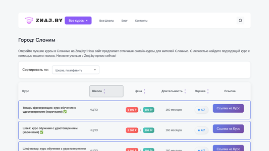 | Название / Заголовок | Онлайн Курсы Слоним - Znaj.by |