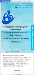 | AI-анализ | This online resource is a website for the State Educational Institution 'Centre for Additional Education of Children and Youth 'Vetrazy' in Minsk, Belarus. The title of the website is 'ЦДО ДиМ Ветразь г.Минска' (Centre for Additional Education of Children and Youth 'Vetrazy' in Minsk). The description contains information about the subbotnik day (Saturday) of the centre and the use of cookies. The website also provides contact information such as a phone number, fax, and email address. The top words on the website include '2025', 'читать' (read), 'далее' (further), 'педагог' (teacher), 'подробнее' (in detail), 'минска' (Minsk), 'образования' (education), 'тво |