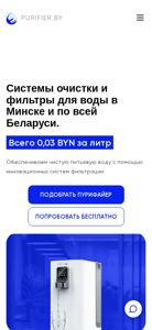 | SEO-описание | Купить пурифайер в Минске от Purifier.by. Пурифайеры и фильтры для воды Беларусь. Продажа, аренда, установка и обслуживание. Пурифайер Минск — чистая вода для дома и офиса. |