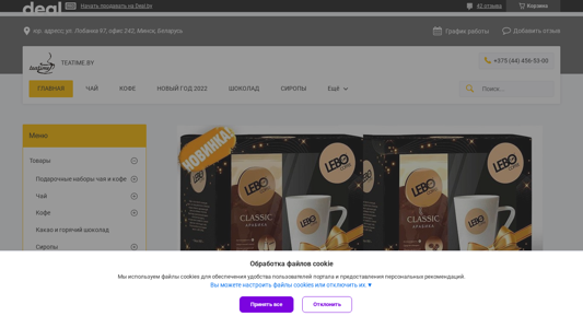 | AI-анализ | --- The web project TEATIME.BY offers contacts, products, and services with prices. This Belarusian website is accessible on Deal.by and provides a shopping cart and 42 customer reviews. The business address is located at Lobanaka Street 97, office 242, in Minsk, Belarus. The company operates from 00-18 and accepts customer feedback. TEATIME.BY sells various types of tea and coffee, including GREENFILD Collection, Earl Grey Fantasy, Movenpick, Dallmayr, Lavazza Crema e Gusto, Americano Crema, Jardin Espresso di Milano, LAVAZZA Qualita Rossa, and Tess. Products are available both for wholesale and retail, with prices ranging from 14.52 to 55 rubles. The website also provides |