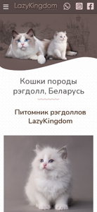 | AI-анализ | This website is a registry for a Belarusian Ragdoll cat breeder named LazyKingdom, located in Belarus. The website provides information about the breeder, the Ragdoll cat breed, and offers the opportunity to purchase Ragdoll kittens. The title of the website is "Кошки породы рэгдолл, Беларусь - Питомник рэгдоллов LazyKingdom Беларусь" (Ragdoll Cats, Belarus - LazyKingdom Ragdoll Breeder Belarus). The description contains keywords related to the Ragdoll breed, Belarus, cats, kittens, and the name LazyKingdom. The top_words indicate a focus on the Ragdoll breed, with the words "рэгдолл" (Ragdoll) and " |