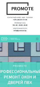 | AI-анализ | The portal promote.by is a professional window and door repair and installation service using PVC materials. It offers consultations, replacement, repair, and installation of windows and doors, as well as fittings and locks. The website provides a list of signs indicating when windows might need assistance, including difficulty opening or closing, loose or ill-fitting frames, and damaged or worn parts. The portal has been operational for 13 years and boasts a team of skilled professionals using high-quality materials from leading European manufacturers. Services offered include window regulation, cleaning and lubricating fittings, window frame alignment, and replacement parts such as uploners, window handles, and locks. Prices for various services range from 10 BYN for fittings maintenance to 44 BYN for balcony furniture installation. The portal offers a free consultation service. |