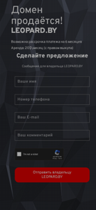 | AI-анализ | The web project LEOPARD.BY is the official website for a domain name sale. The website states that LEOPARD.BY is currently for sale, with the option for a six-month payment plan. The rental fee for the domain is 20$\month, with the right to purchase it. Visitors can make offers and send messages to the domain owner through the provided contact information. The website is operated by Internet.by, with phone numbers for chats provided via Viber and WhatsApp. |