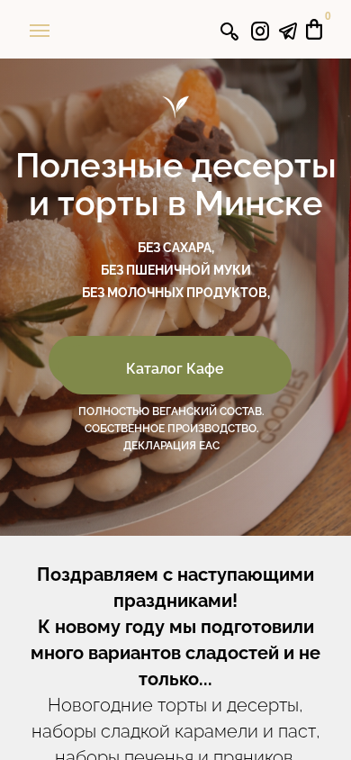 | AI-анализ | --- The website "Goodies.by" offers healthy vegan desserts and cakes in Minsk, Belarus. They provide delivery and self-pickup options. Their products are free from sugar, wheat flour, and dairy products. |