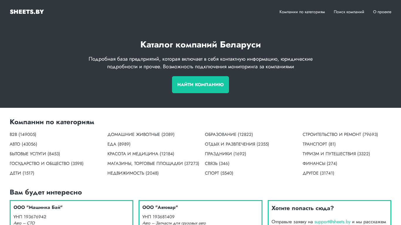 | SEO-лексика | sheets авто компании категориям компаний подробности ооо унп минск support данные главная поиск проекте каталог беларуси подробная база предприятий которая |