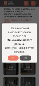 | AI-анализ | --- This website is an e-commerce platform for custom-made cabinets in Minsk, Belarus. The company only accepts orders within Minsk and its surrounding region. Potential customers are encouraged to provide their phone number for a consultation and quote, and can answer seven questions to receive a discount of up to 20% or 100 rubles. The website offers various types of cabinets including wardrobes, corner cabinets, and cabinets for balconies or bedrooms. Customers can choose materials such as LDSP, mirror, lacquer, or wood for the doors. The company offers free delivery and professional installation. The website includes options for customers to contact via Telegram, Viber, or phone. Customers are required to answer questions regarding the desired cabinet form, location, and size to receive a quote. The website also offers consultations for customers unsure of their preferences. The domain is |
