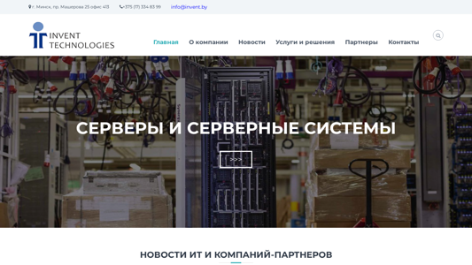 | AI-анализ | language: ru country_code: BY  The website INVENT is a corporate site based in Minsk, Belarus, specializing in contract sales of hardware and software to corporate clients in the country. The company is an official partner of HP Inc. and Hewlett Packard Enterprise. The site features sections for news, solutions and partners, and offers products including HP laptops, desktops, servers, and printers. A recent news article announces the release of HP's updated Spectre x360 laptop with a 15-inch AMOLED screen. The site also provides information on new HP monitors, computers, and security systems. The domain is registered in Belarus and is written in Russian. |