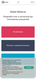 | AI-анализ | The portal Assist.by is a payment system in Belarus that offers online payment solutions for websites. The service integrates with various electronic payment systems and accepts payments in the internet, providing technical support. The website uses cookie files for better user experience and requires consent for their usage (Cookie Policy). The company offers solutions and products for internet equating, including ERIP, SOFI, Antifraud, and call center payment options. Assist also provides marketing opportunities and analytical tools for businesses, as well as tokenization services for large enterprises, retailers, airlines, travel agencies, logistics companies, insurance companies, banks, and financial organizations, as well as small and medium businesses. The company has been working with major retailers in Belarus since 2012 and offers a multifunctional payment service tailored to their business needs. The team consists of over 40 developers who can handle |