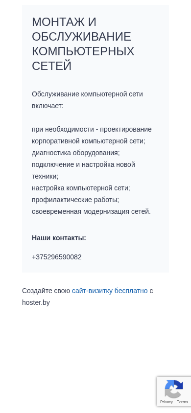 | AI-анализ | This online resource is dedicated to the installation and maintenance of computer networks. The offered services include designing corporate computer networks upon request, diagnosing equipment, connecting and configuring new technology, setting up computer networks, preventive maintenance, and timely upgrading of networks. |