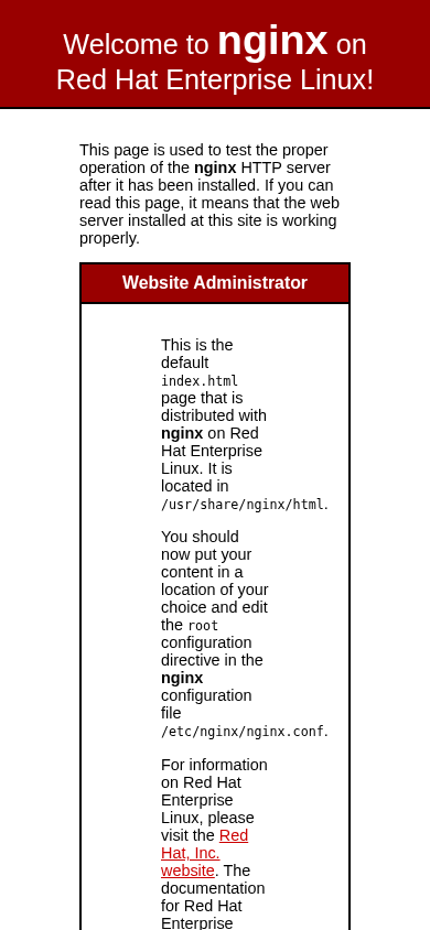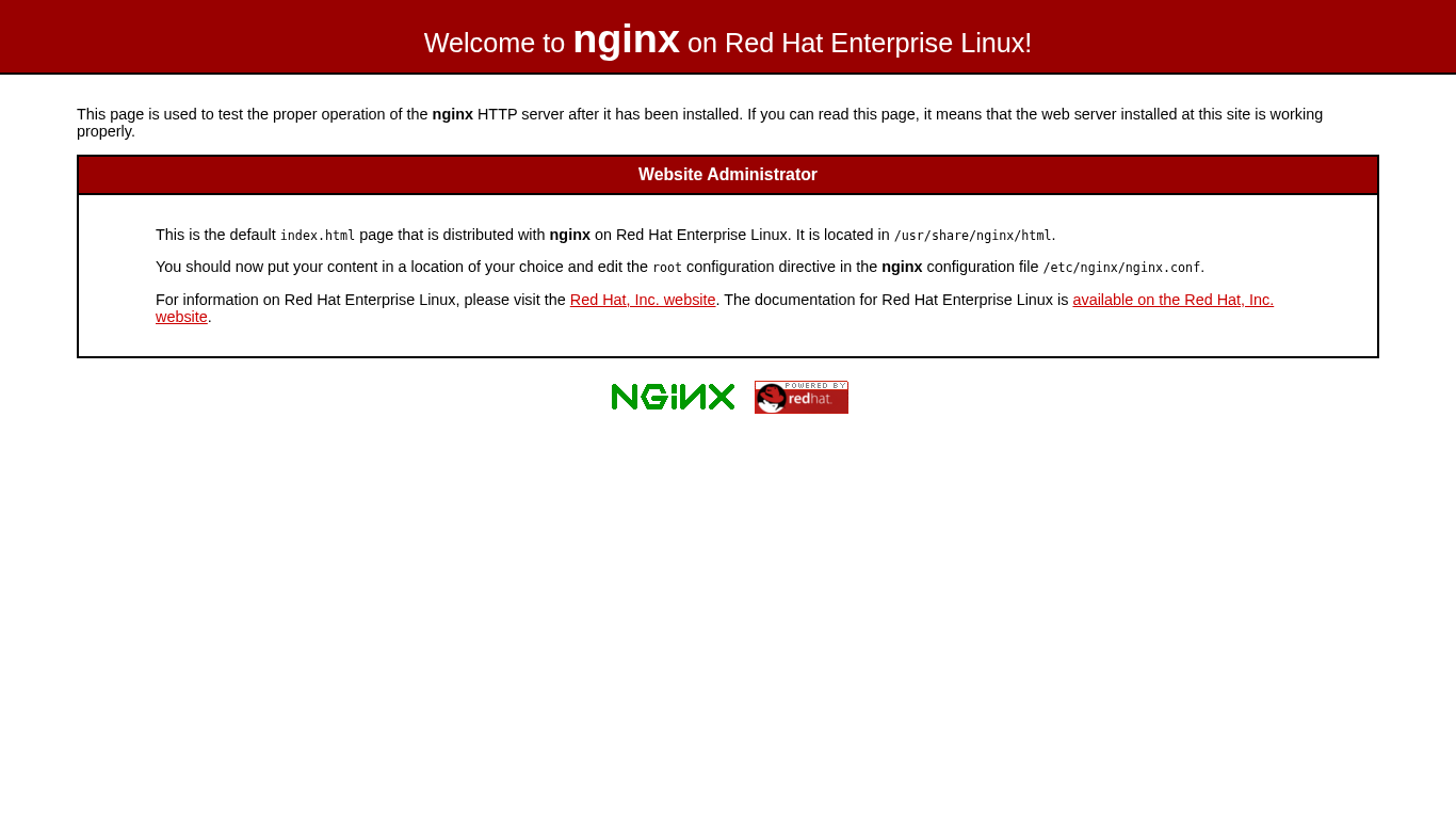 | Название / Заголовок | Test Page for the Nginx HTTP Server on Red Hat Enterprise Linux |