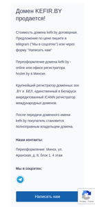 | Название / Заголовок | Домен KEFIR.BY продается! |