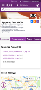 | AI-анализ | This online resource is a Belarusian business organization, Arcinger Ligal OOO, providing legal support and project realization in sectors of energy, construction, telecommunications, oil refining, and privatization for foreign investors. The company is located in the capital city, Minsk, at the address Sovetskaya 12, office 29, and can be contacted via phone numbers +375 (17) 224 87 xx and +375 (29) 304 34 xx. The Unified State Register number is 193265850. The company's business hours are from 9:00 to 18:00, Monday through Friday, without lunch breaks. Services include legal consultations and assistance in various business matters. |