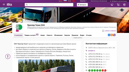 | AI-анализ | This online resource is a logistics company, Prosper Techno OOO, offering international container transport services by road and sea, as well as delivery of loose and complete cargoes from Europe, China, and America. The company provides customs and warehousing services in Germany, Poland, and Lithuania, and offers matrices for press-granulators. The website includes information on the company's location in Minsk, Belarus, and contact details. Services include transportation and insurance of goods, customs clearance and documentation in Belarus, and sales and delivery in Belarus, Russia, Ukraine, and other countries. The company specializes in the import of matrices for press-granulators from Graf GmbH in Germany. |