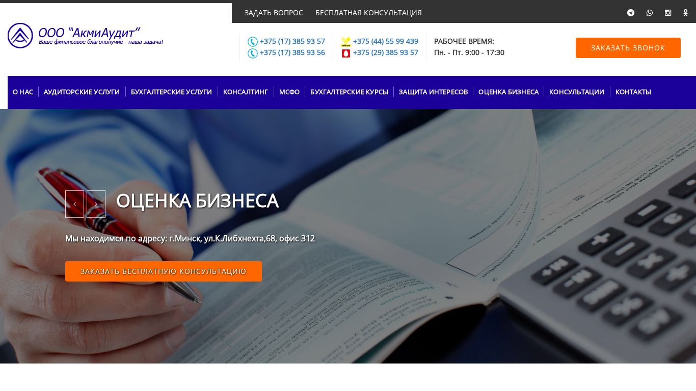 | AI-анализ | The web project "AkmiAudit.by" is an auditing firm offering various consulting and accounting services to clients in Belarus. The website provides contact information for three different offices in Minsk, and offers free consultations. The title of the website includes the company name, "AkmiAudit," and the keywords reflect the nature of the business, including "auditor," "consulting," "accounting," and "taxes." The top words include various phone numbers and the address of one of the offices, as well as words related to the services offered, such as "consultation," "uservices," and "protection of interests." The company claims to provide individualized solutions for each client and to ensure financial reporting accuracy while identifying weaknesses in the accounting and tax systems of businesses. Confidentiality is guaranteed, and the team of specialists have extensive experience in the field. Services offered |