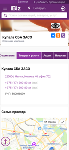 | AI-анализ | This website is for the Belarusian insurance company "Купала СБА ЗАСО" (Cupola SBA ZASO) located in office 702 of the "Немига" building at 40, praspiekt Nehru in the city of Minsk, with the postal code 220004. The company's contact information includes two phone numbers starting with the Belarusian country code "+375" and the numbers "200 80 xx". The website provides a map for visitors to easily find the office location. The company's Unified State Register number is 500048039. The website includes sections for the company's products and services, news, vacancies, videos, and customer reviews on social media platforms such as VKontakte and Odnok |