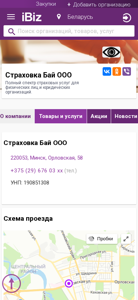| AI-анализ | language: ru The website strahovka.by, registered under the .BY domain, is dedicated to Strahovka Bay OOO, a Belarusian company offering a full range of insurance services for both individuals and legal entities. The site provides a map scheme for visiting the company located at 220053, Minsk, Orlovskaya, 58, as well as contact details including a phone number +375 (29) 676 03 xx. The company's UNP number is 190851308. The site also includes business information, opening hours from Monday to Saturday with no lunch break, and a rating of the company within the industry. The website falls under the categories of 'Insurance Companies' and 'Insurance Companies in Minsk'. |