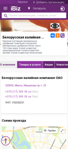 | AI-анализ | The portal Belarusian Potash Company OAO is a major supplier of mineral fertilizers. The company exports mineral fertilizers to over 100 countries worldwide. The company offers chlorine potash in granular, small, and technical forms. The website provides information on the company, its products and services, news, vacancies, and contact details. The address of the company is 220002, Minsk, Mashevaya street, 35. Contact numbers are listed as +375 (17) 309 30 xx. The company's UNP number is 192050251. The website includes a map for directions and company information on opening hours, which are Monday to Friday from 9:00 to 18:00, without lunch breaks. The company is listed under the categories ' |