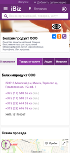 | Название / Заголовок | Белхимпродукт ООО - Средства защиты растений. Семена. Биостимуляторы роста растений. Микроудобрения. Грунт. Зернобобовые. Картофель. Лен. кукуруза.. 223018, Минск, , Тарасово д., Придорожная, 1/2, оф. 1 |