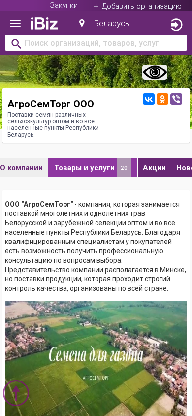 | AI-анализ | The website is for AgroSemTorg OOO, a company that provides seed sales of various agricultural crops optically and to all populated areas in the Republic of Belarus. The company is located in Minsk, at the address Сосновый бор, 2, пом. 4. The website includes information about the company, its products and services, which include seeds, grass seeds, and planting materials. The company offers various seed types: annual and perennial crops, beans, cereals, grain-bean crops, corn, oilseeds, and grass mixtures. The company's products meet the standards of the GOST. The website also includes contact information, including multiple phone numbers. |