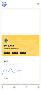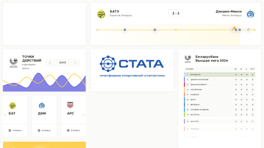 | AI-анализ | The portal stata.by focuses on football (soccer) in Belarus, specifically covering the performances of two clubs, FC BATE Borisov and FC Dinamo-Minsk, in the Belarusian Premier League (Высшая лига). The site provides statistics on matches, including passes, shots, corners, and goals for both teams. Users can log in to access more features. The stadium capacities for Borisov-Arena and National Olympic Stadium in Minsk are also indicated. The site features the latest league standings, with clubs listed in order of wins, draws, losses, and points. The two highlighted players are Oleg Nikiforenko from FC BATE and Vladislav Morozov from FC Dinamo-Minsk, with their respective performance indices provided. |