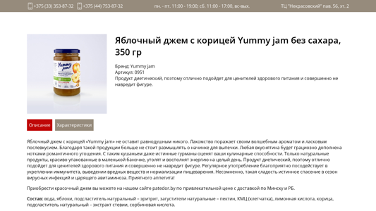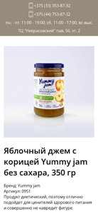 | SEO-лексика | подсластитель натуральный кислота ценность джем yummy jam натуральные 100 грамм 375 яблочный корицей 350 продукт диетический поэтому отлично подойдет ценителей |